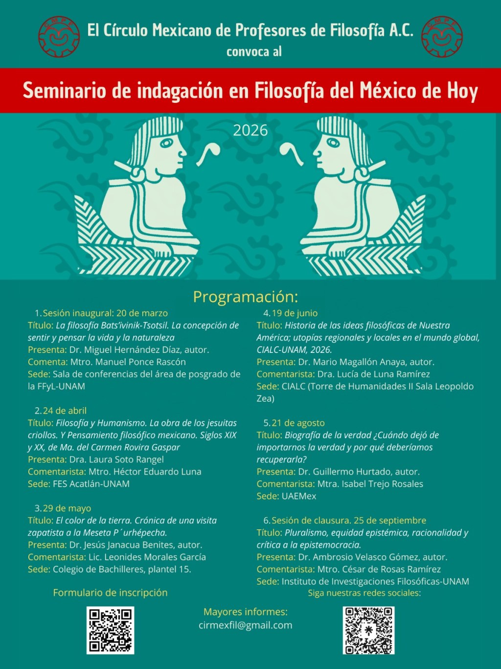 Invitamos a toda la comunidad filosófica nacional (estudiantes, profesionales de la Filosofía, docentes e investigadores) al Seminario de indagación en Filosofía del México de Hoy.
